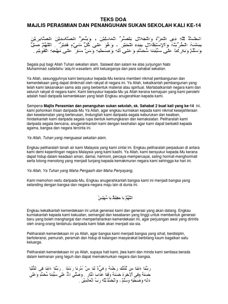 Doa Buka Puasa Dalam Bahasa Melayu. 2 Bacaan Doa Majlis Dalam Bahasa Arab. 630 petang- 1000 malam Tempat.